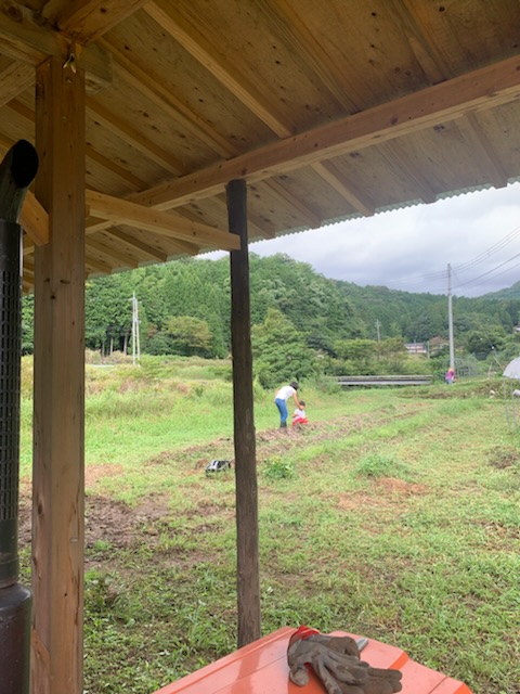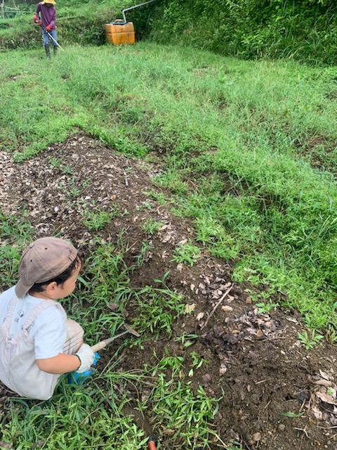 こうなると思っていたので長女と長男に種を持たせ、蒔くのを手伝ってもらいました。