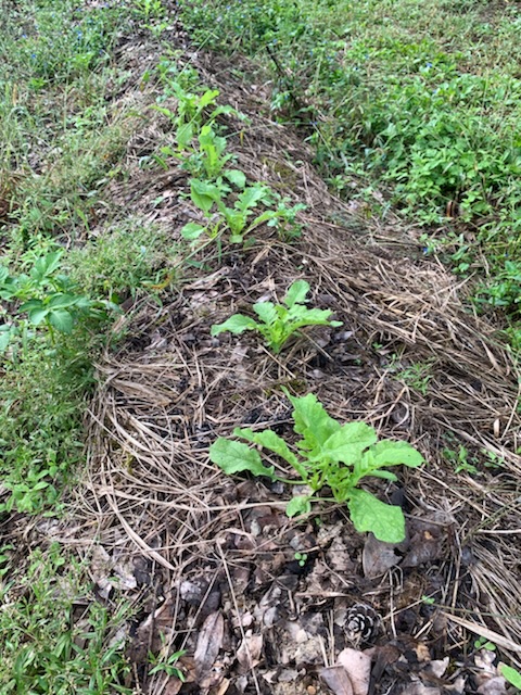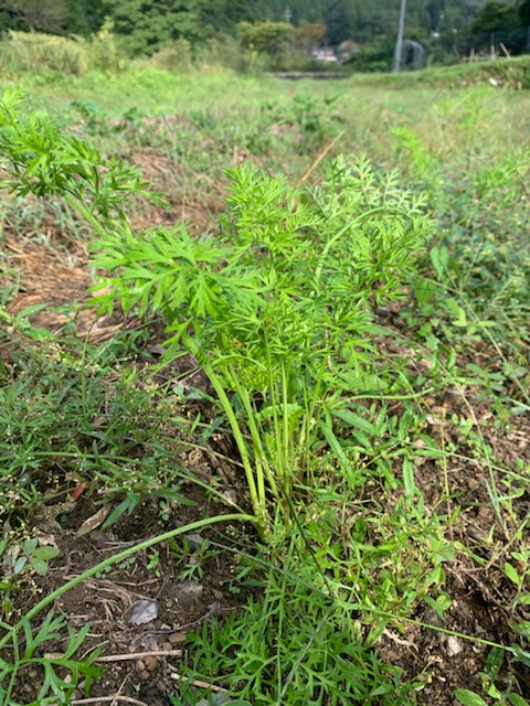 人参が、自家採取の種でよく育ってくれていて頼もしいです。実ができるといいのですが…
